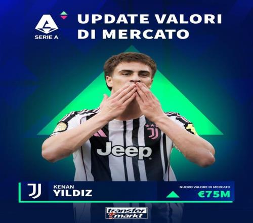 考虑到这些因素,伊尔迪兹的身价上涨50%,从5000万欧元升至7500万欧元,这不仅合情合理,也实至名归,使他跻身意甲身价最高球员的前三名之列。