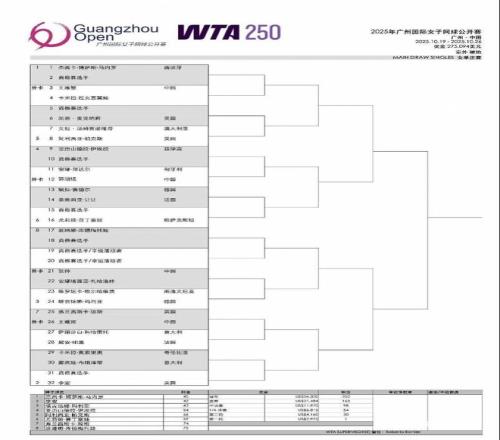 2025-10-21南都讯 记者汪雅云 2025年广州国际女子网球公开赛单打签表于19日正式出炉,张帅领衔王曦雨、王雅繁和郭涵煜四...