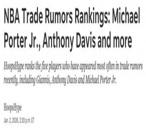 准备开抢!在距离交易截止日越来越近的情况下,美媒《hoopshype》根据最新一周的市场消息更新公布交易市场TOP5大鱼名单,其中快船被曝考虑追浓眉,勇士则有意数人。